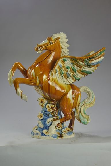 此外,高水旺老师创新作品腾飞也颇为引人注意,神马振翅高飞,遨游九州。唐三彩自盛唐以来,辉煌过,也失意过,如今的祖国繁荣昌盛,经济文化腾飞,我们相信,唐三彩在有识之士的共同努力下,也将迈步腾飞。